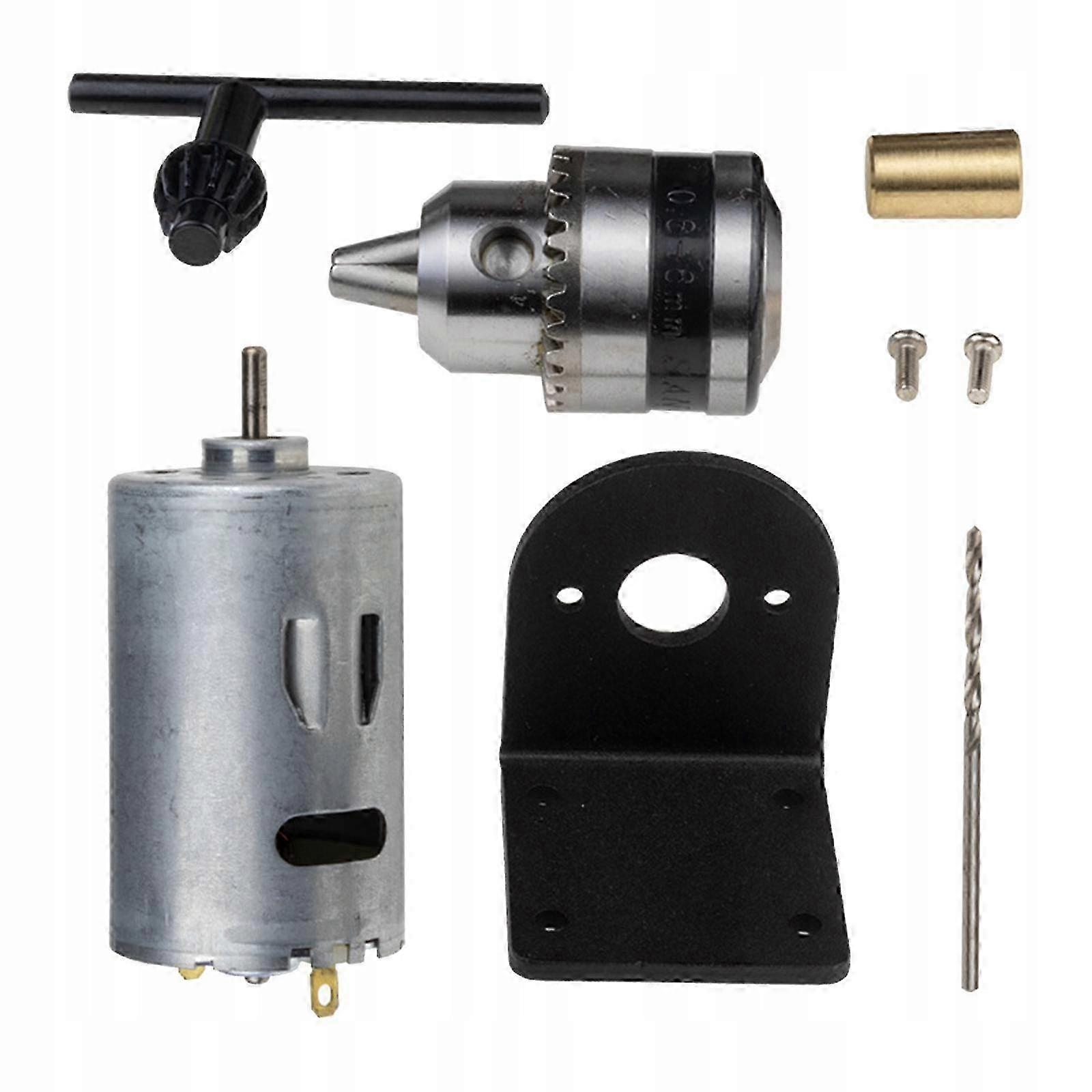Press do lathe with DC motor 555 Tools do motors Microdrills Consumables do cardboard set A Description: Motor DC 12V 555 with miniature manual drill chuck and mounting bracket. mini drill chuck 0,3-4mm or 0,6-6mm Do milling machines, lathes, drills, machines. Impact drill and electric drill with different power. High precision thread and conical hole. The tools are complete and convenient. Specification: Model Number: 555 engine Material: stal stainless steel alloy Size Chart: Set A: Motor with drill chuck 0,6-6 mm Set B: motor with drill chuck 0,3-4 mm The package includes: 1x Engine 1x mounting bracket (with 2 mounting screws) 1x clamping sleeve (holding 0.3 4mm or 0.6-6mm) 1x clamping wrench 1x copper sleeve Drill bit 1x1,5 mm
