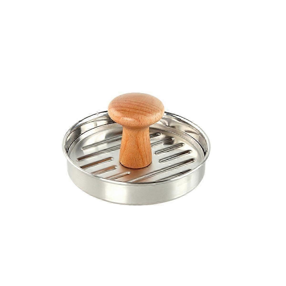 Burger Press 5 Inch Heavy Duty Stainless Steel Hamburger Patty Maker with Wooden Handle