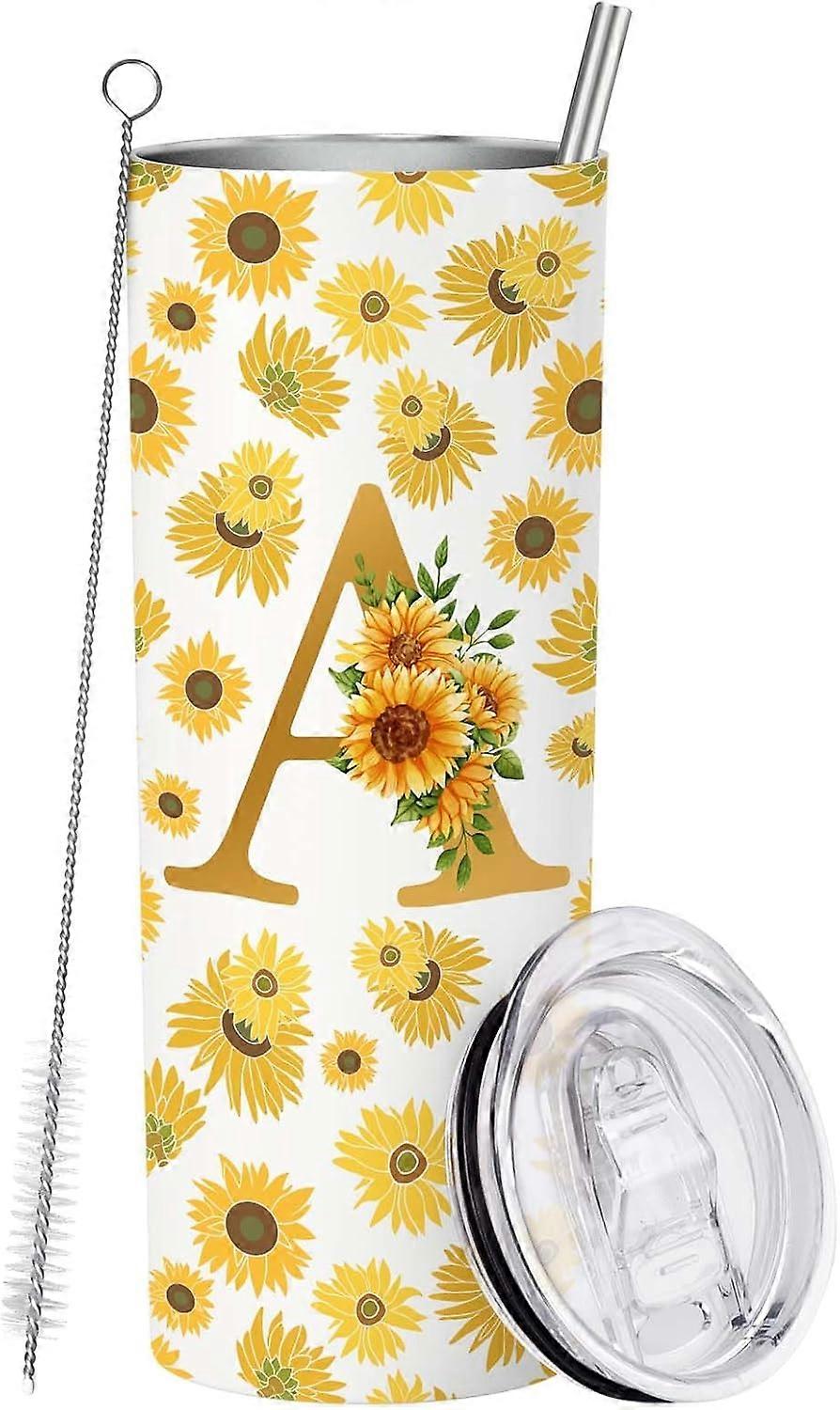 Sunflower Gifts for Women, Initial A Stainless Steel Wine Tumbler, Monogrammed Gifts for Women, Personalized Gifts for Women, Perfect Gifts for Women