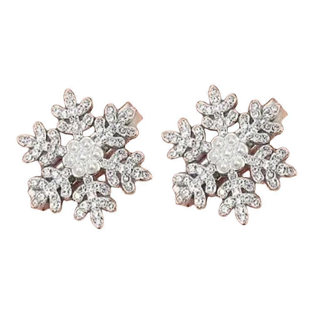 Exquisite Rhinestone Plush Snowflake Hair Clips Silver Pearl Christmas