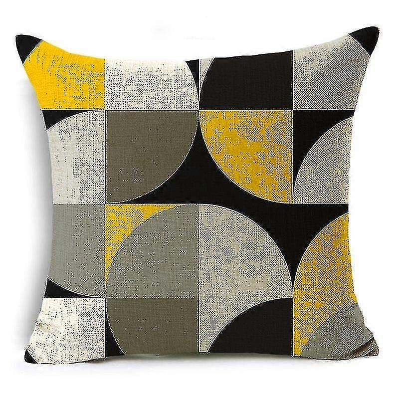 Black Yellow Contrasting Color Splicing Design Linen Cushion Cover Sofa Pillow