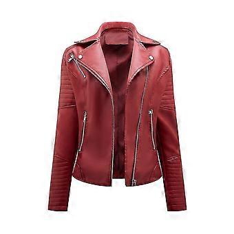 Primavera e Outono Curto couro aparar lapela jaqueta de motociclista jaqueta zipper jaqueta para mulheres