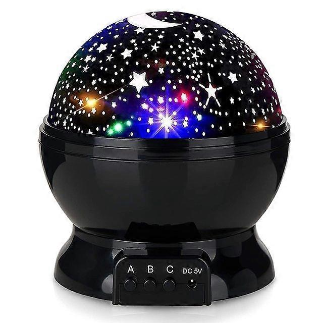 Specifications Material: ABS Switch Type: 3 Push Button Voltage: 5V Light Source: 4 LED Bulbs You can choose the different power operation methods, USB Cable or Batteries: 1. Insert 4 * AAA batteriesnot included into the battery holder with the correct polarity, then recover the battery cover. 2.USE IT AS A LAMP, YOU MUST HAVE THE LID ON. IF YOU WANT IT TO BE A PROJECTOR, JUST TAKE OFF THE MEMBER 3. Three Model: A mode: The Nightlight light (warm light) Press A again would turn off A Model. B mode: Switch for the light color (monochrome light or colorful overlay). Note: Press B Button 9 times in a row, the model B would turn off. C mode: It is the rotary switch (rotate or not rotate freely chosen) Note: Pressing C again would turn off the rotation. Note: 1. Please note that the USB Cable and the Batteries cannot be used at the same time. Package Content 1 x Star Projector 1 x USB Cable 1 x Manual