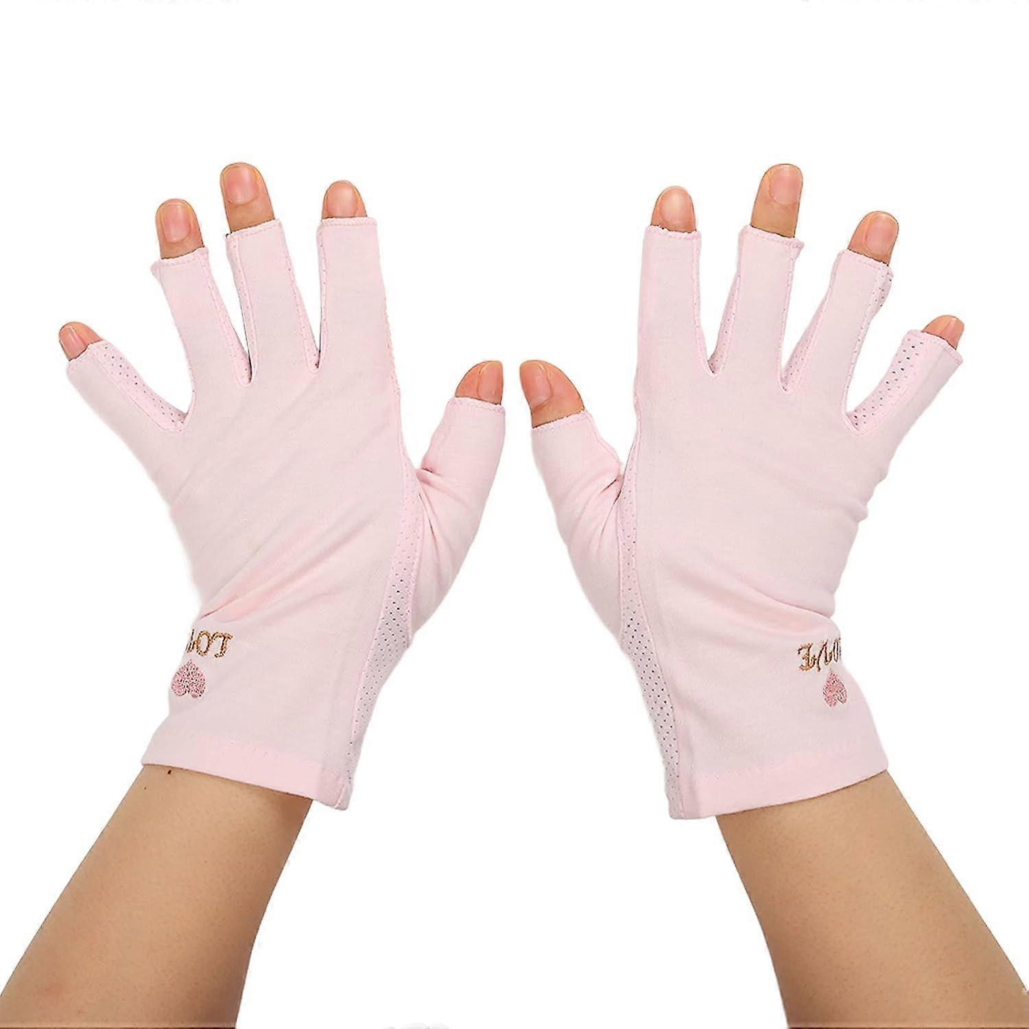 UV Protection Stretchy Breathable Fingerless Fibre Cotton Nail Lamp Gloves for Home Salon (Grey)