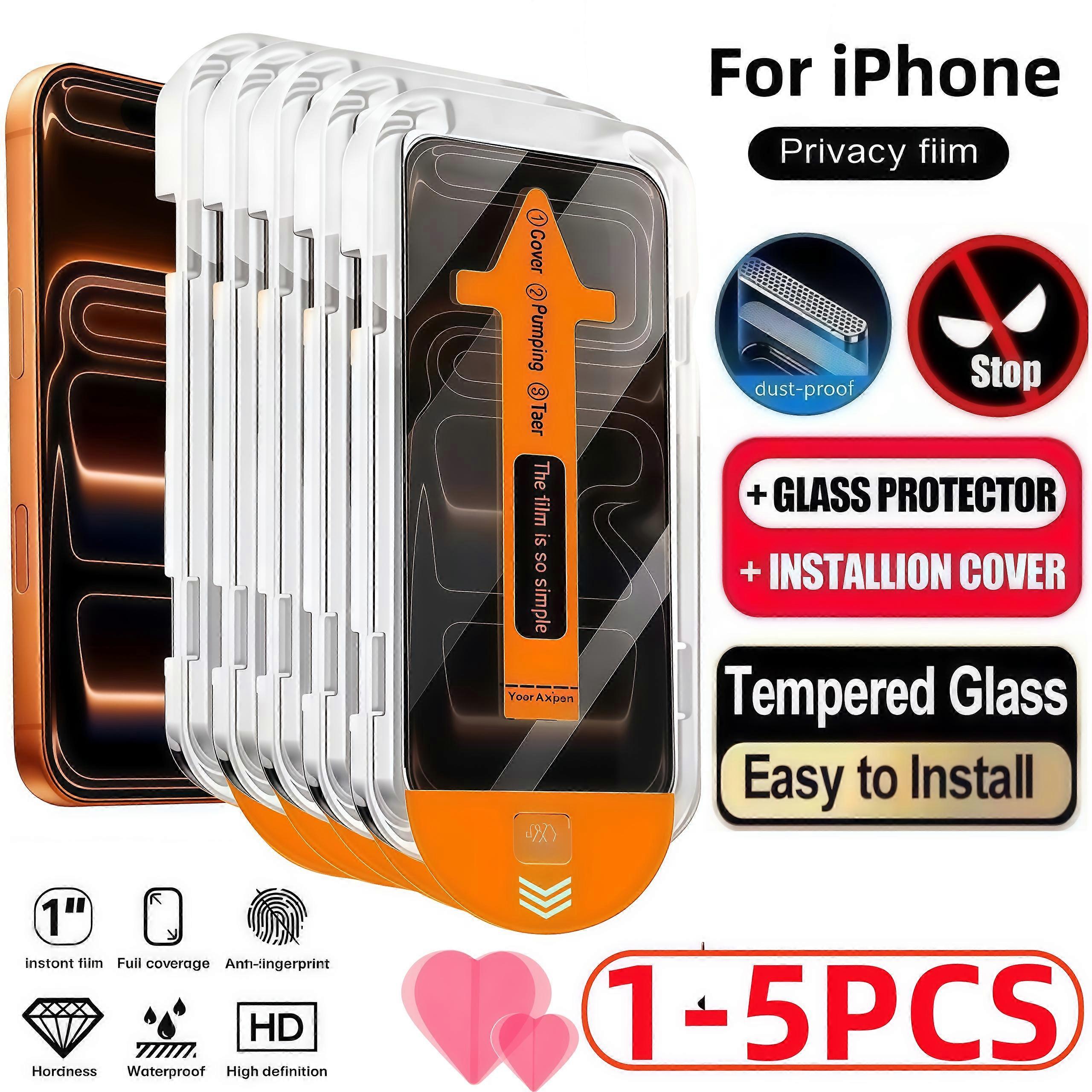 Protecteur d'��cran de confidentialit��, 1 �� 5 pi��ces, Installation sans poussi��re, pour iPhone 15 14 13 12 11 16 17 Pro Max, verre tremp�� Ant