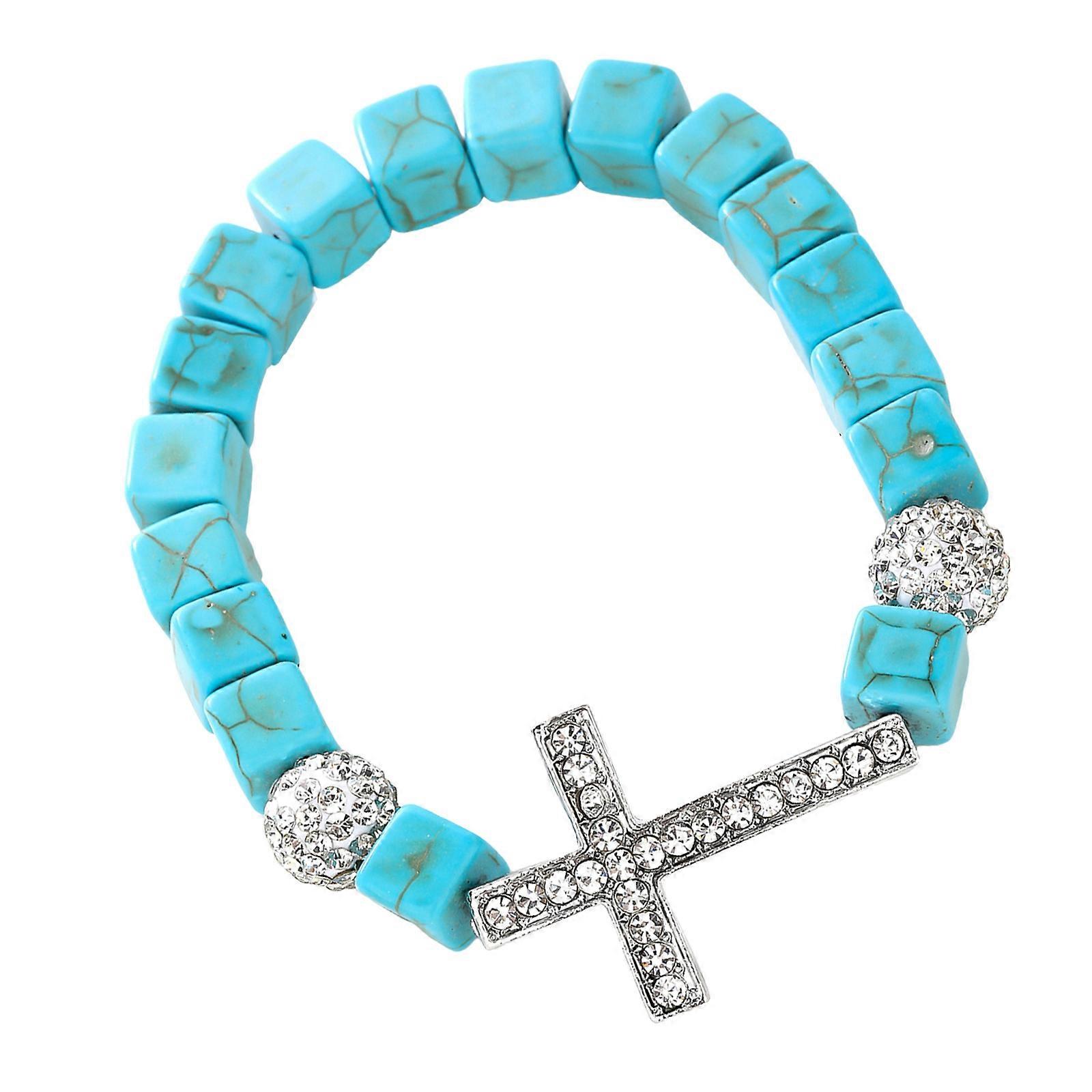 Irregular Turquoise Stone Crosses Bracelet Elastic Stretch Fit Metal Bead Jewelry Unisex Accessory Multicolor