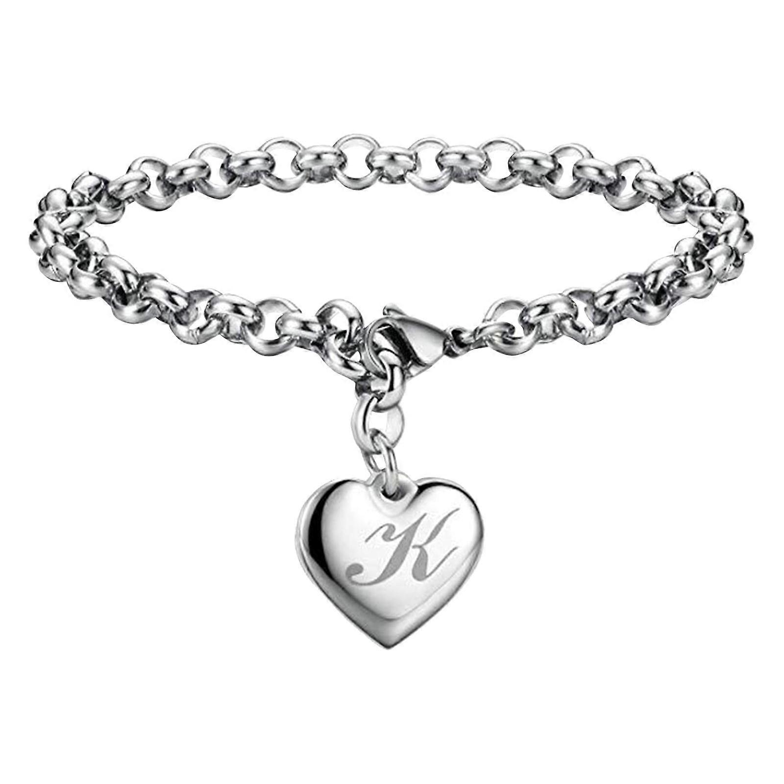 ZTTD Fashion Initial Charm Bracelet, Stainless Steel Heart Alphabet Bracelet for Women & Teen Girls, 26 Letters Jewelry Gift (Compatible with XYZ)