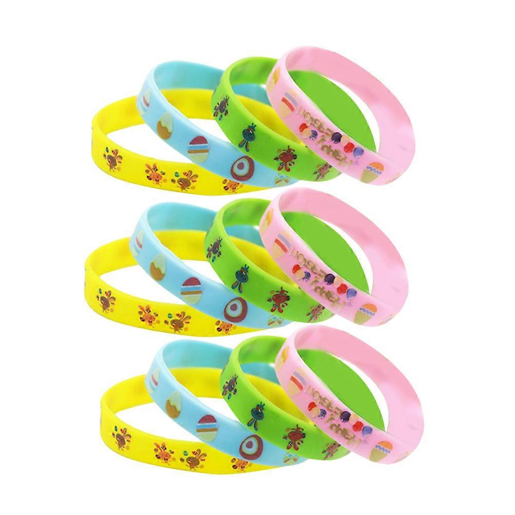 Creative Easter Bracelet 12Pack Silicone Accessories For Kids Featuring Cartoon Egg Prints Perfect For Easter Day Party In Multiple Colors