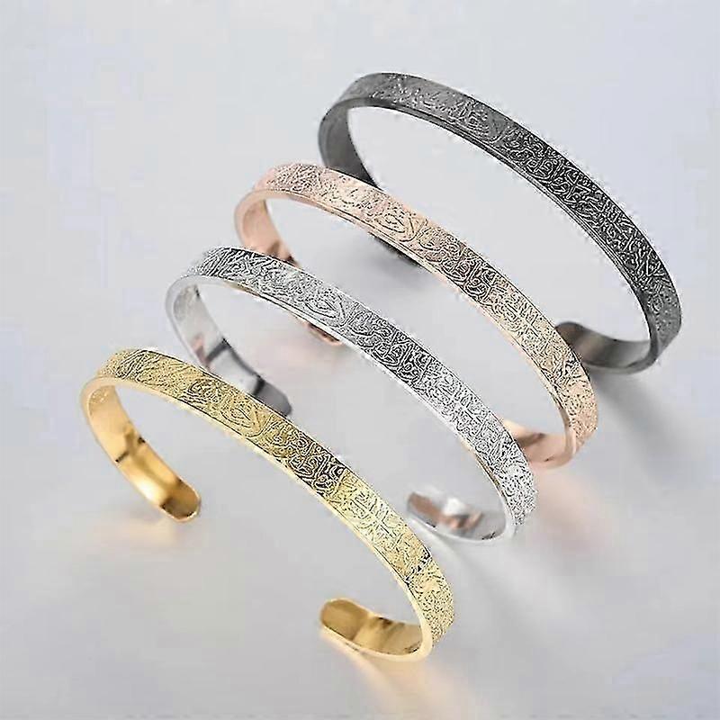 Stainless Steel Ayatul Kursi Bangle Islamic Arabic Cuff Bracelet for Women