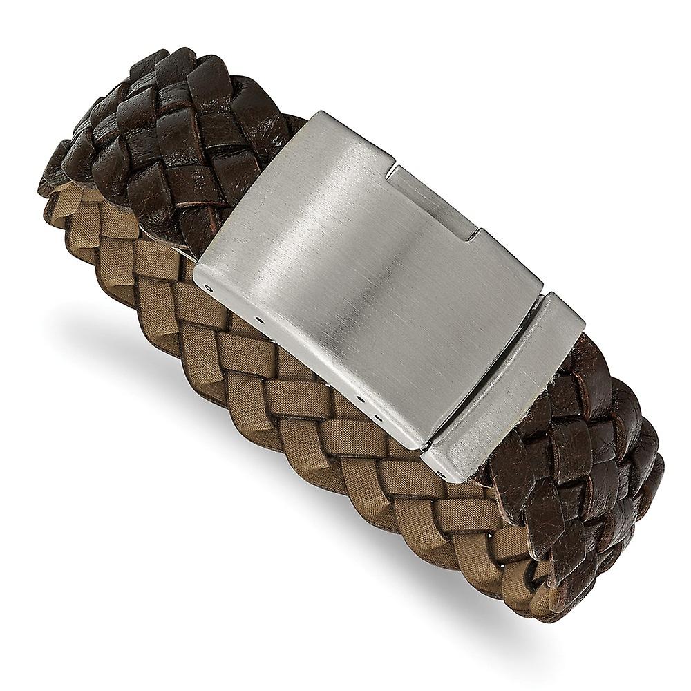 Stainless Steel Brushed Brown Leather Bracelet 9 Inch Link Bracelet for Women