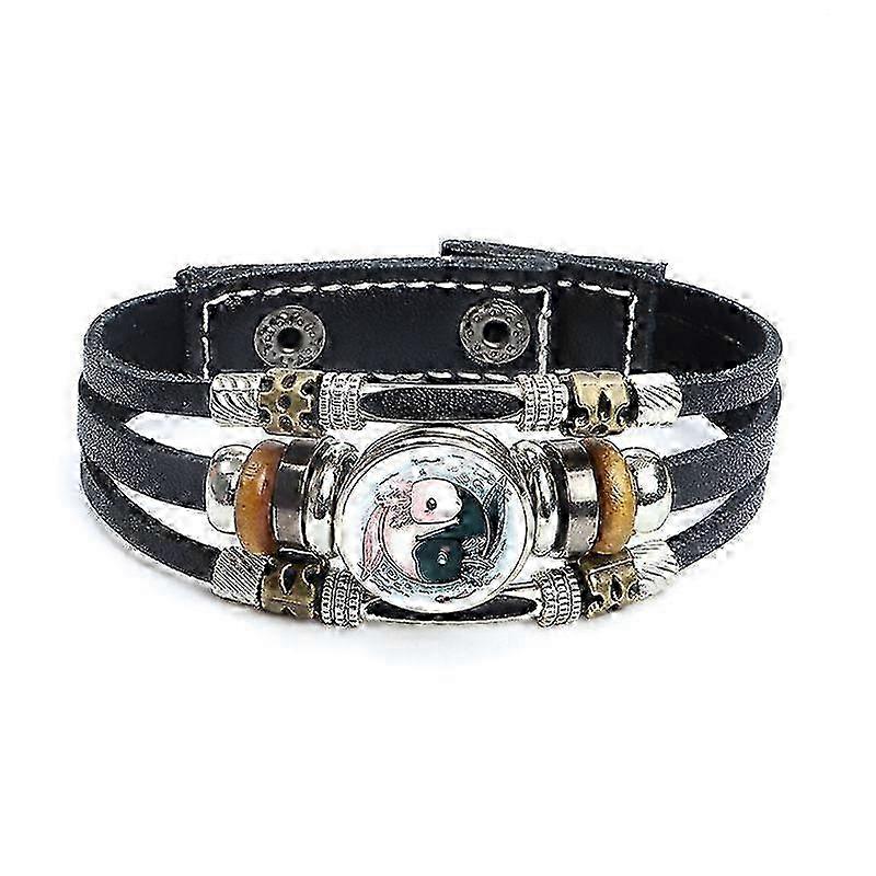 Multilayered Leather Rope Bangle with Axolotl Design and Glass Cabochon Pendant for Cute Animal Jewelry Gifts