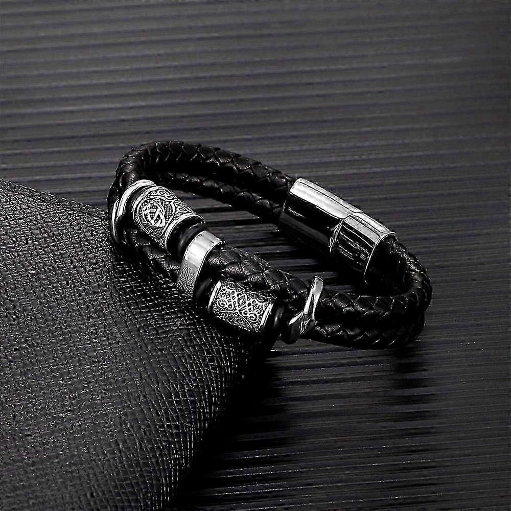 Genuine leather bracelet for men in Viking style featuring multicolored strands and Nordic stainless steel, perfect jewelry gift for couples