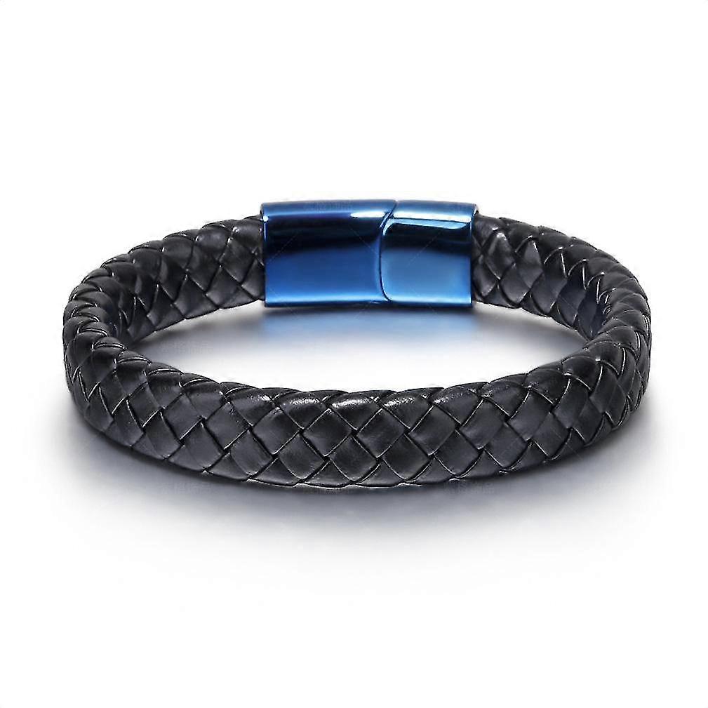 Woven Leather Bracelet With Magnetic Stainless Steel Buckle
