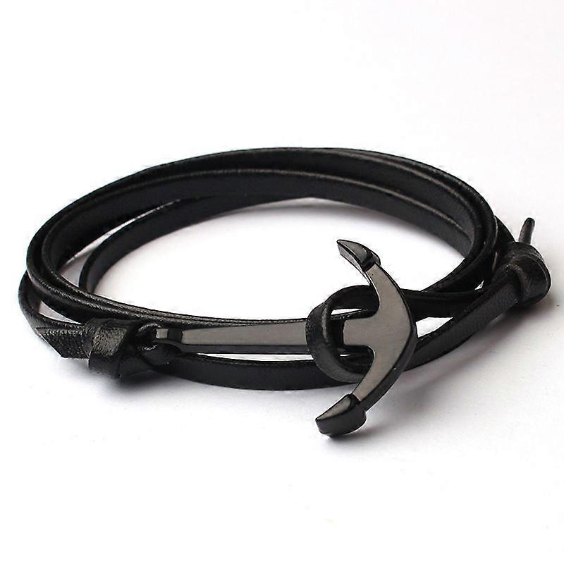 Multilayer braided leather bracelet with ancora for men fashion vintage jewelry