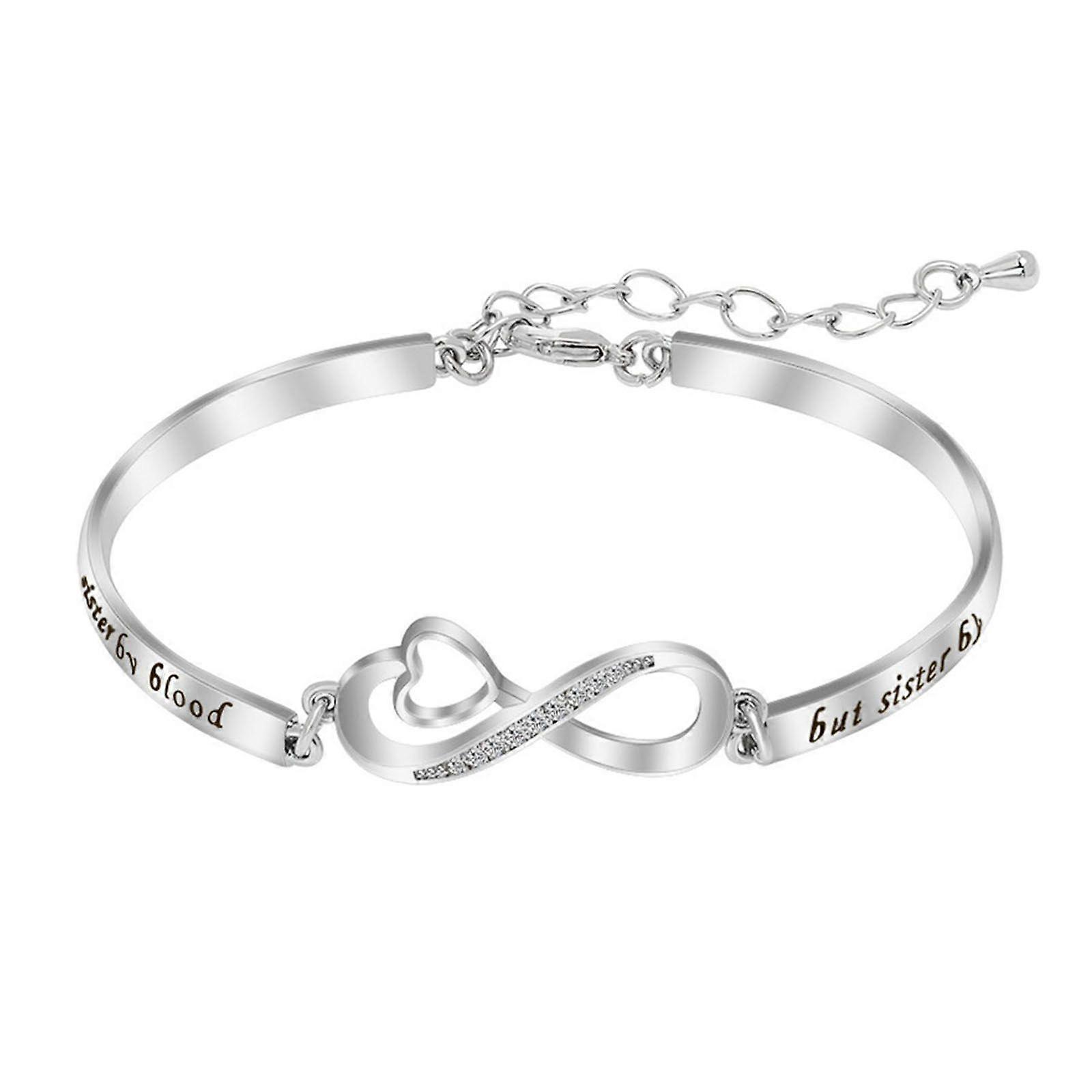 Simple Diamond Friend Bracelet with "Not Sister by Blood But Sister by Heart"