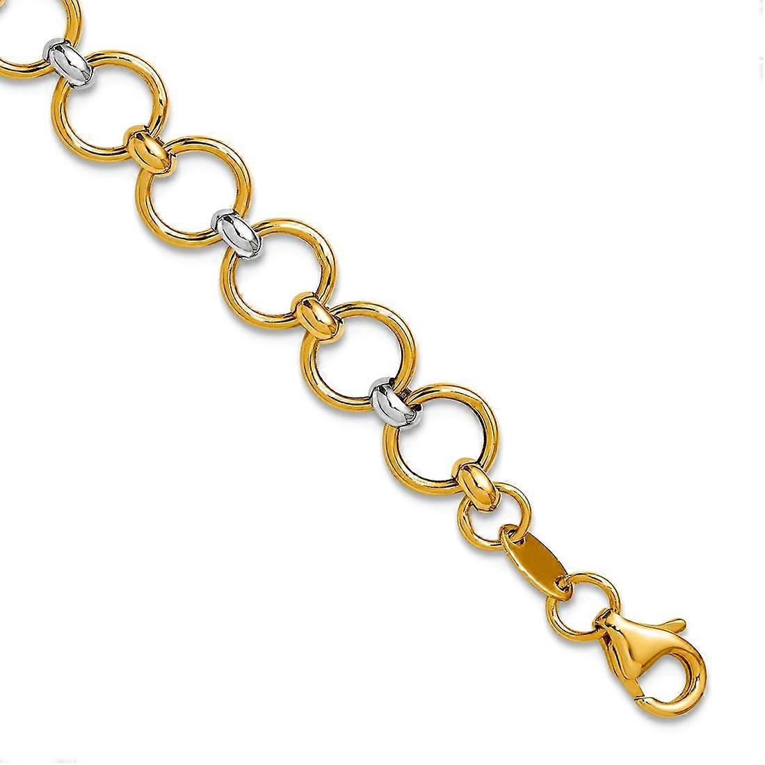 10k With White Rhodium Polished Fancy Circle Link Bracelet - 7.5 Inch - 2.5 Grams In 10k Yellow Gold - - Length of Item: 7.5 in - Chain Length: 7.5 in - Chain Width: 6.5 mm - Clasp /Connector: Lobster (Fancy) - Finish: Polished - Chain Type: Link-Other -