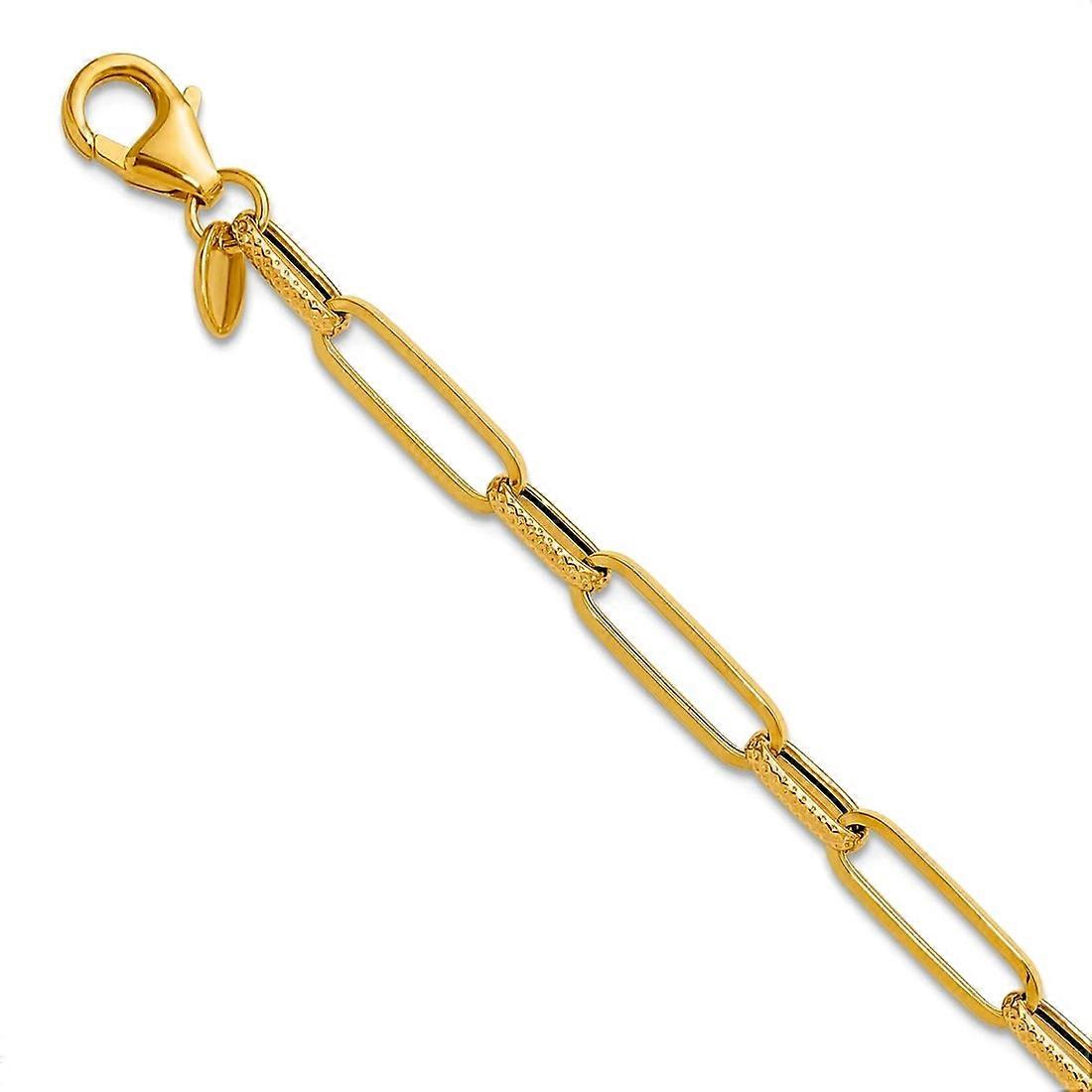4.2mm 14k Solid Yellow Gold Polished Textured Fancy Link Bracelet 7.5 Inch Link Bracelet for Women