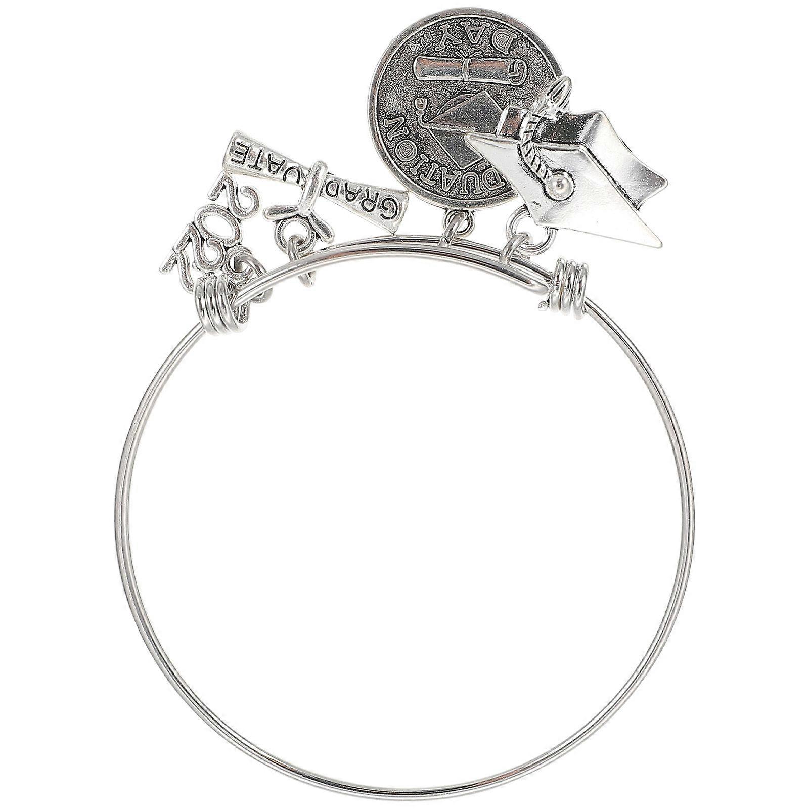 Graduation Bracelet Adjustable Chic Letter Pendants Jewelry for Friends Graduates in Silver 1Pack