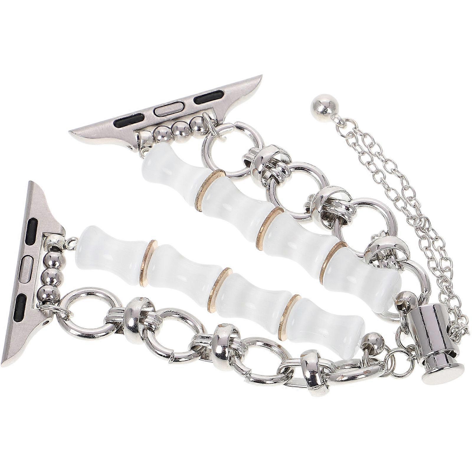 Beaded Bracelet Watch Band for Women Adjustable Crystal Stone Strap 2Pcs Set