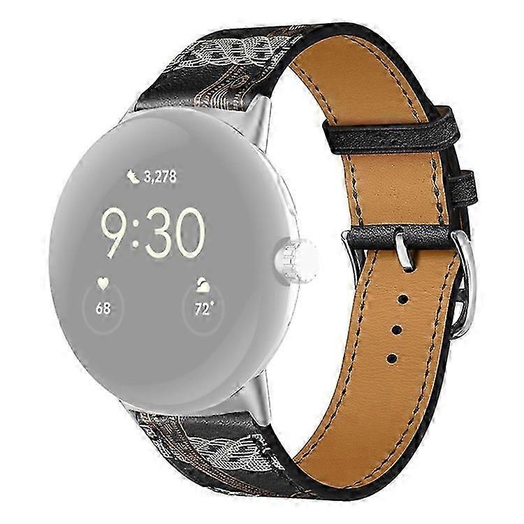 Genuine Leather Watch Band Replacement with Stainless Steel Buckle for Google Pixel Watch Compatible
