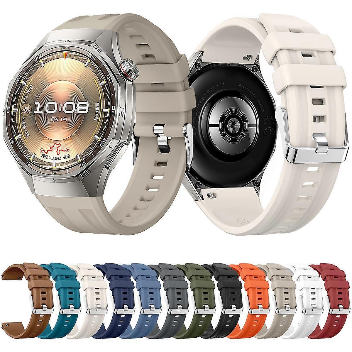Silver Steel Buckle Solid Color Silicone Watch Band For Huawei Watch GT 6 Pro