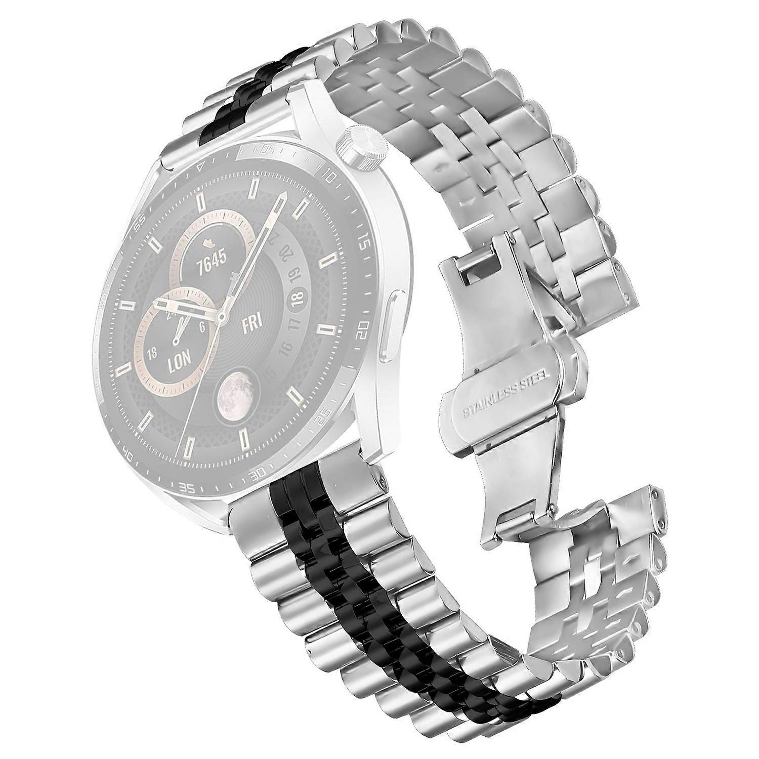 For Honor Watch GS Pro Wrist Band 5-Bead Stainless Steel Butterfly Clasp Watch Strap - Silver+Black