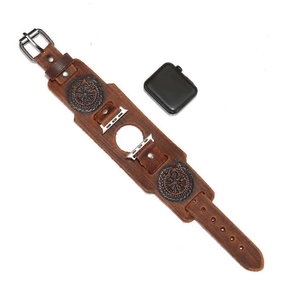 Vintage Viking Compass Dragon Totem Watch Strap, Genuine Leather, Compatible with 42/44MM Smart Watches