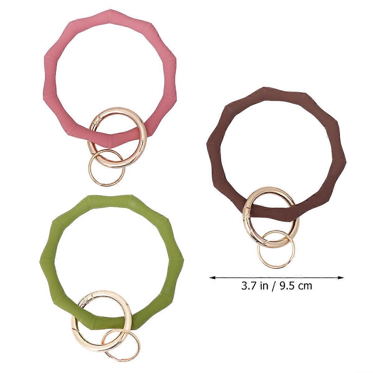 Olive Green Bamboo Joint Silicone Bracelet Key Ring Decoration 6Pcs Set