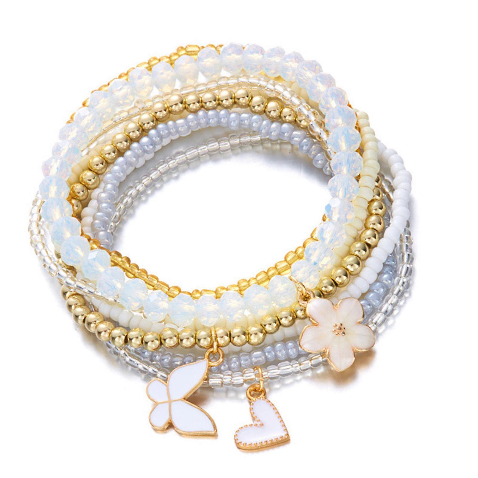 Elastic Floral Heart Butterfly Bracelet Layer Bohemian Jewelry for Women Girls Fashion Accessories Multicolor
