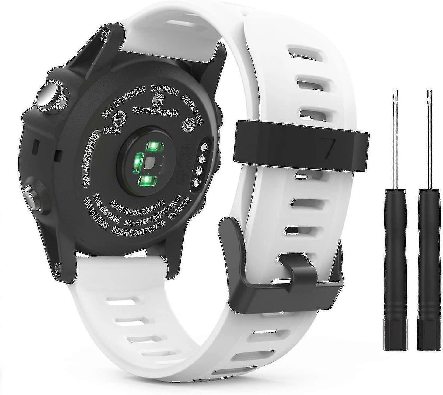 Compatible ModelsPersonalize your Garmin Fenix 3/Fenix 3 HR/Fenix 3 Sapphire, Fenix 5X/Fenix 5X Plus, D2 Bravo/D2 Delta PX/D2 Charlie, Tactix Bravo/Tactix Charlie, Descent Mk1, Quatix 3 Smart Watch with this refined replacement wristband. (Note: The strap is NOT for Fenix 5/5 Plus/5S/5S Plus/6/6 Pro/6S/6S Pro/6X/6X Pro.)Pin BuckleAn innovative pin-and-tuck closure ensures a clean fit. Metal parts are made with hypoallergenic nickel-free stainless steel.Durable MaterialThe sport watch strap is made of soft silicone with a smooth finish for a sporty look. Comfortable and durable.Easy to InstallThe watch band can be installed onto watch lugs (not included) on both ends precisely and securely. It comes with screwdrivers.Wrist SizeThe watch strap fits the wrist 5.70-8.26 (145mm-210mm) in circumference. It comes with screwdrivers.
