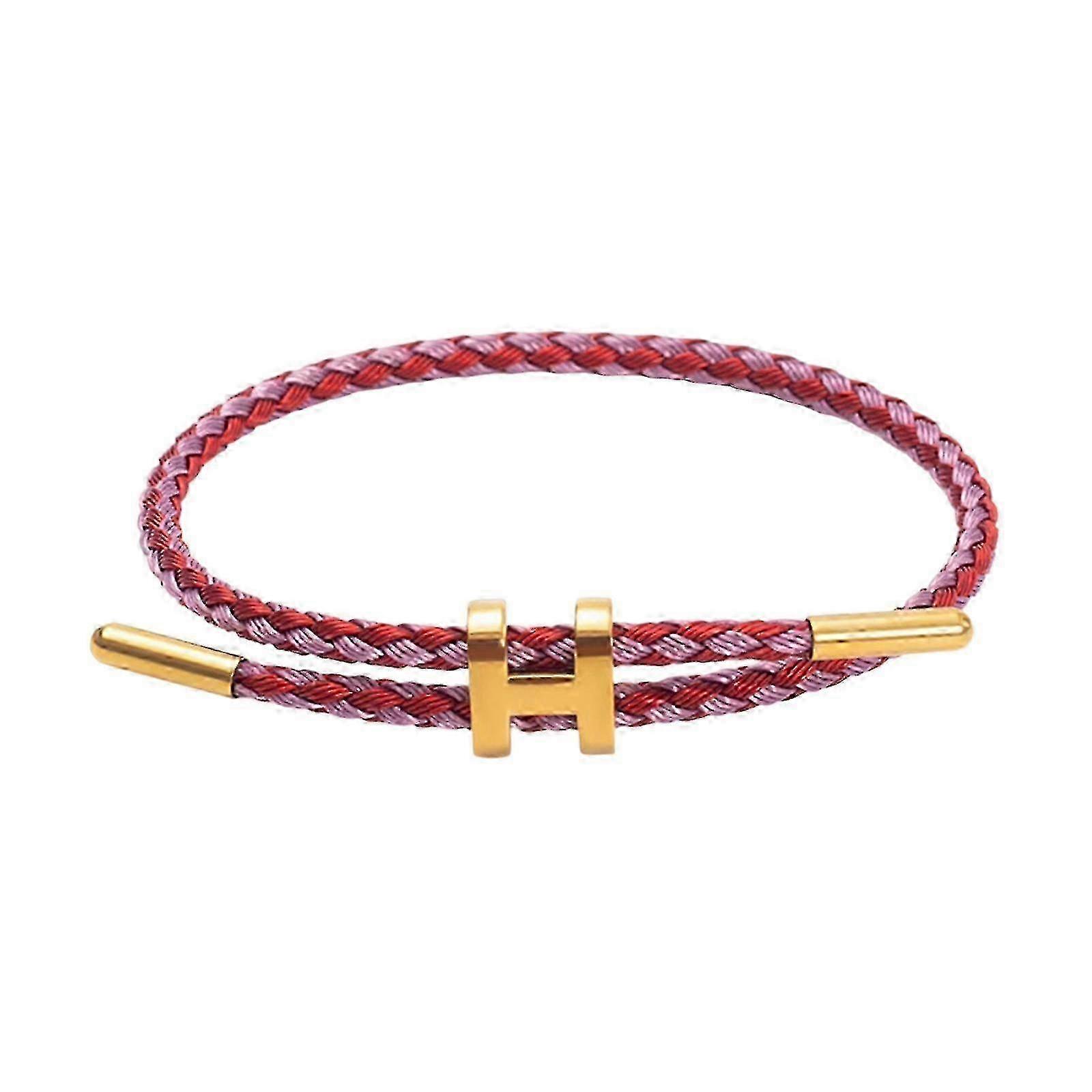 Adjustable Stainless Steel Wire Rope Bracelet for Women with Gold Plated H Buckle Design, Perfect Gift Jewelry brown w