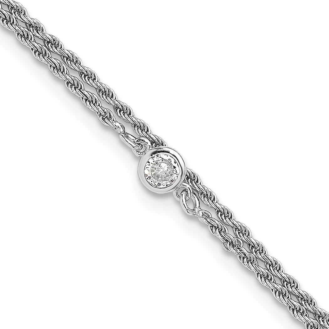 925 Sterling Silver Rhodium Plated Polished Cubic Zirconia 2 strand 9 In Plus 1.5in Ext 9 Inch Strand Bracelet for Women