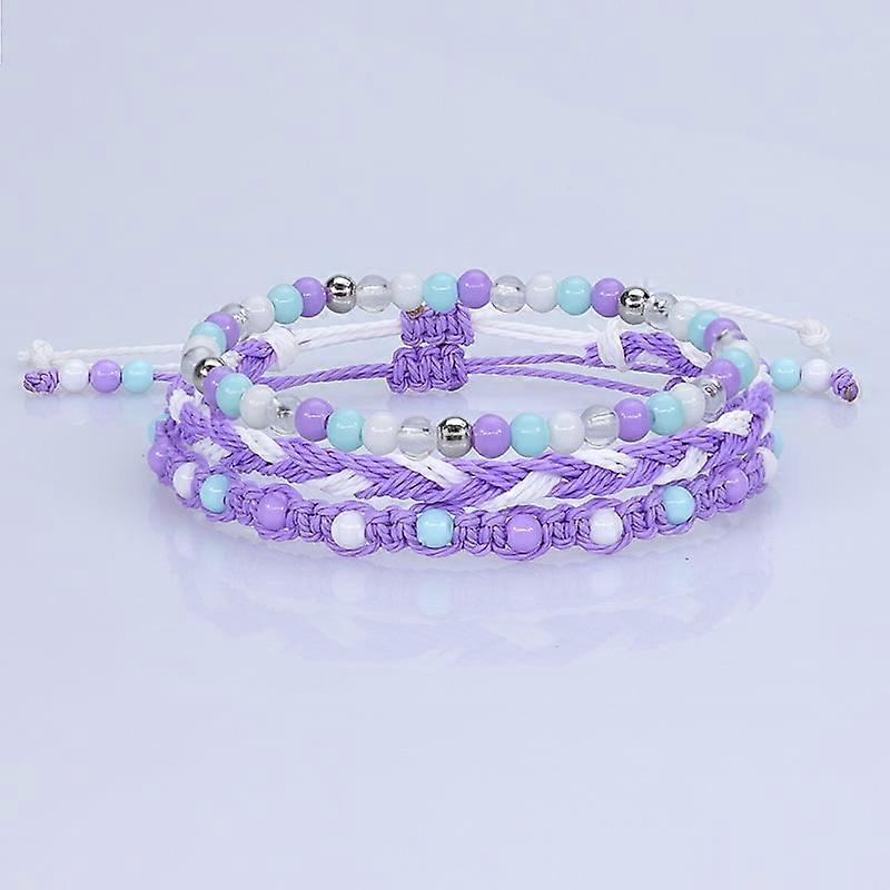 Janrevotw Colorful Beads Bracelet Waterproof Wax Cord Braided Bracelet Set Of 3 Handmade Hand Rope Adjustable Teenagers Colorful Beads Bracelet