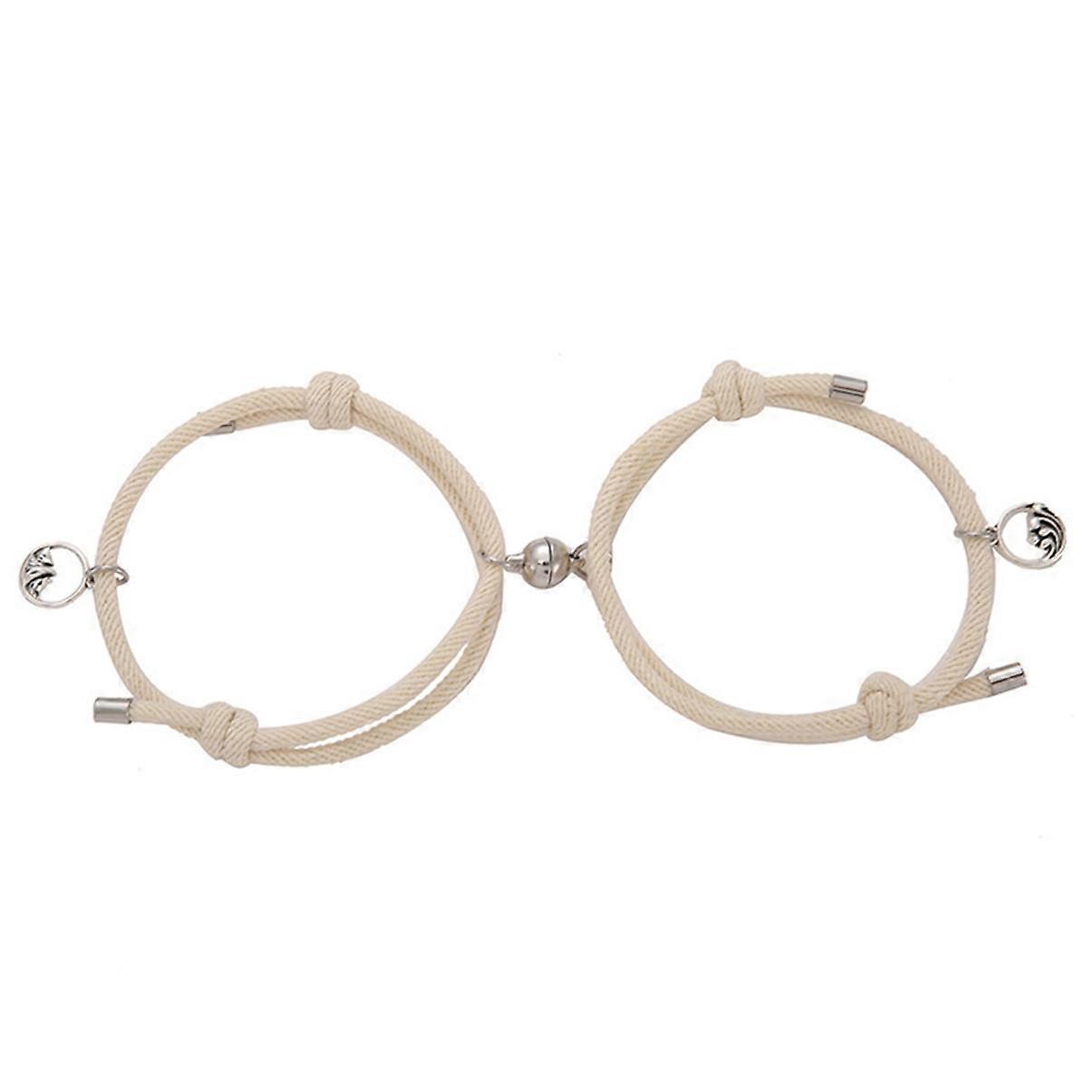 Magnetic Couples Bracelet, Adjustable Handmade Rope Chain Love Jewelry Gift for Him & Her, Khaki - Compatible with Matching Accessories
