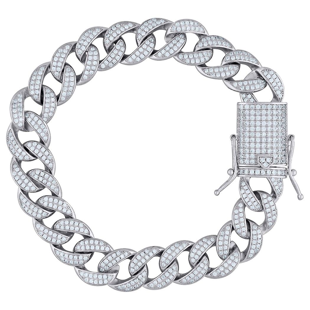 925 Sterling Silver Mens 14mm 9 Inch Cubic Zirconia Comfort Curb Bracelet Link Bracelet for Men