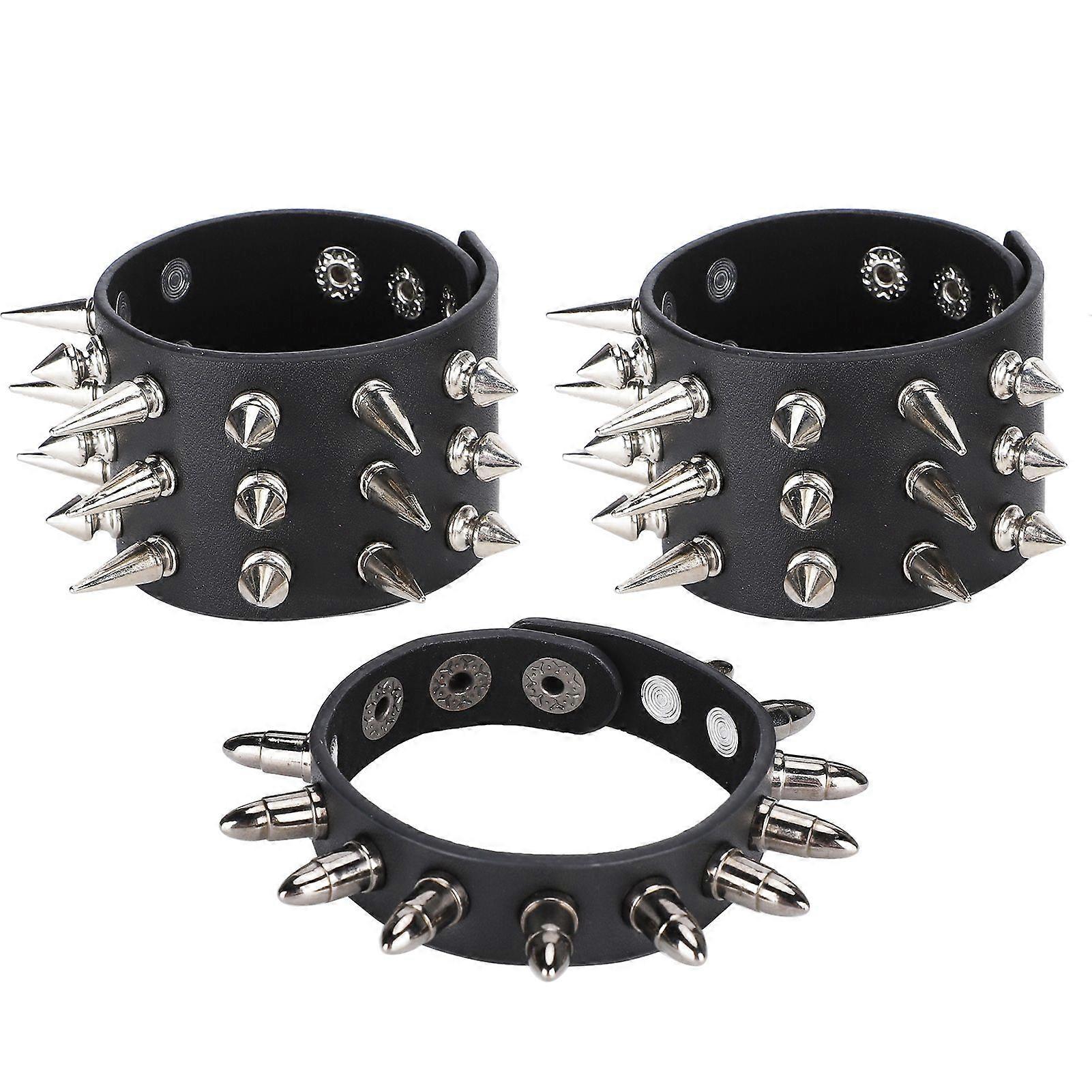 3pcs Punk Studded Rivet Bracelet Personalized Bracelet Cuff Retro Metal Wristband