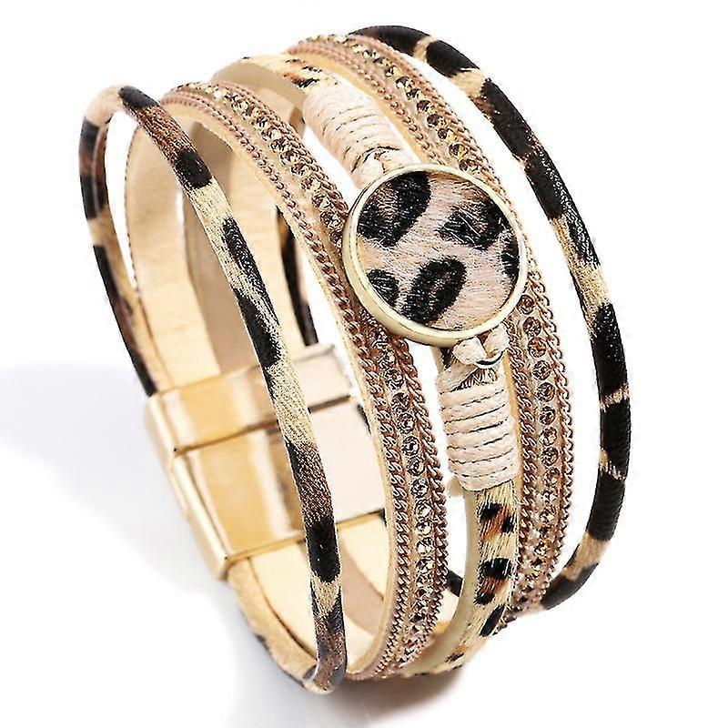 Leopard Wrap Bracelets For Women Multilayer Wide Animal Cheetah Print Wristband Cuff Bangle With Magnetic Buckle Jewelry