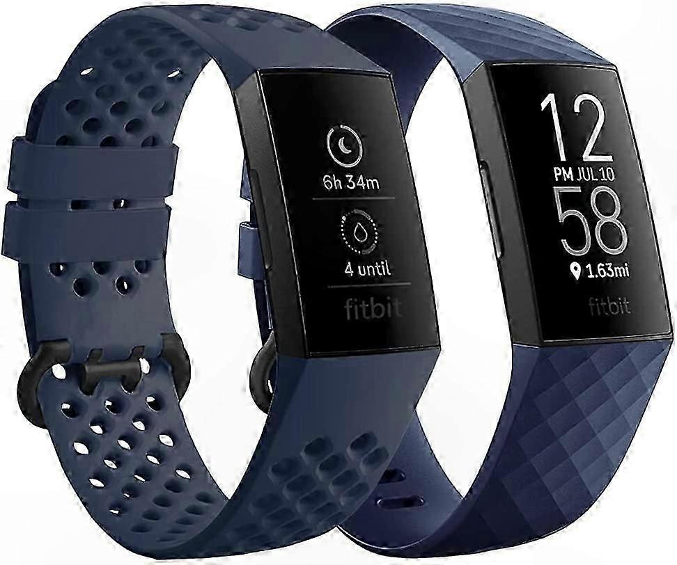 Silicone Watch Bands for Fitbit Charge 3/4, Comfortable Replacement Straps for Men and Women, 2-Pack (Dark Blue)
