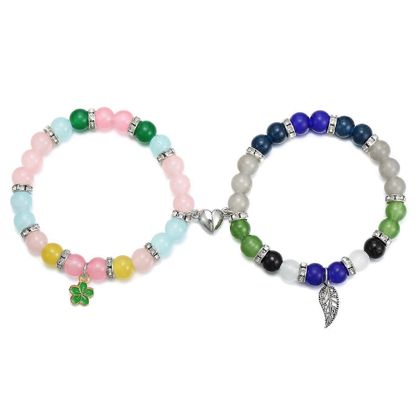Couple Elastic Bracelets With Flower And Heart Ball Pendant Colors Magnetism Unisex Fashion Jewelry For Friends