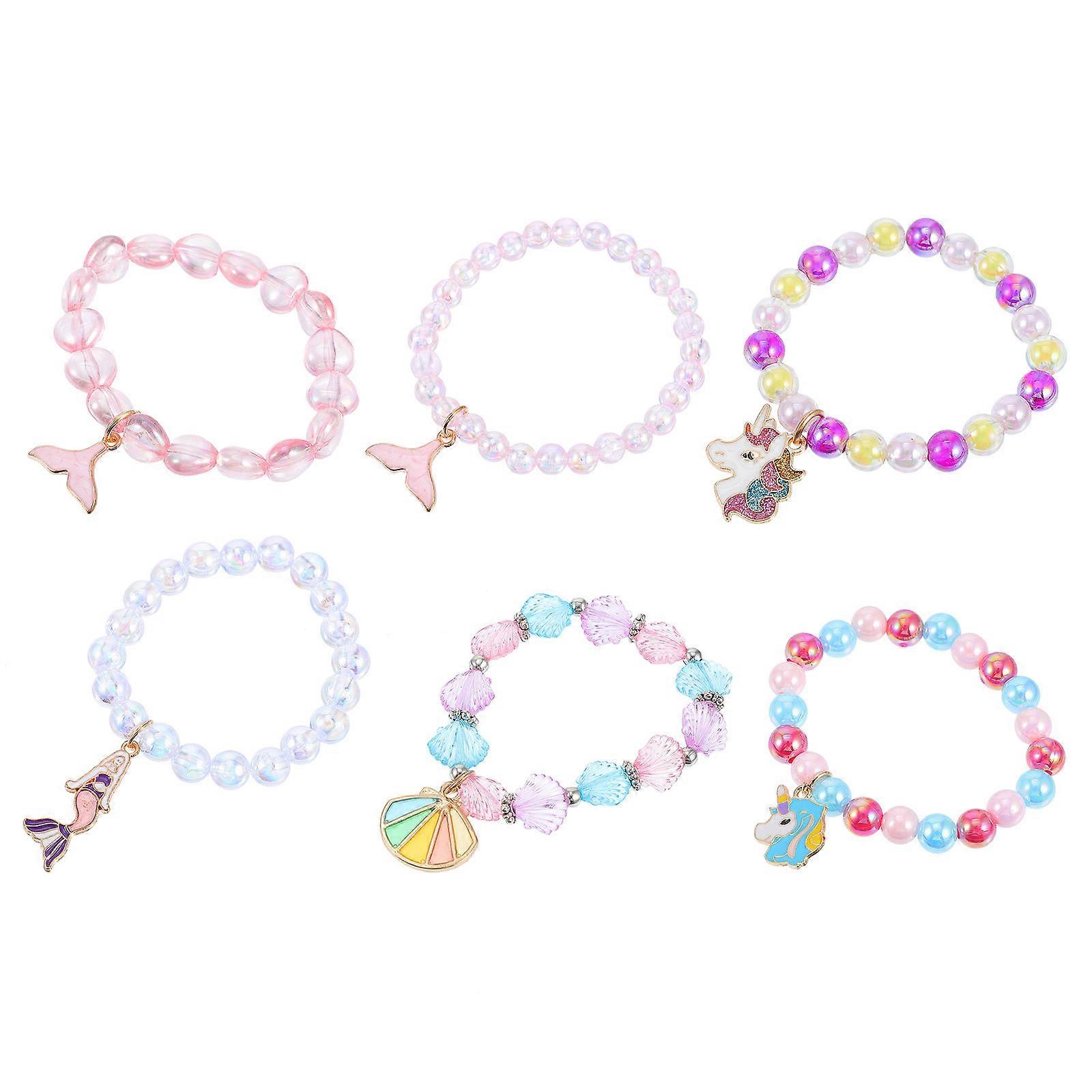 Party Favor Bracelets Girls Unicorn Pendant Beaded Design Birthday Celebration 6Set