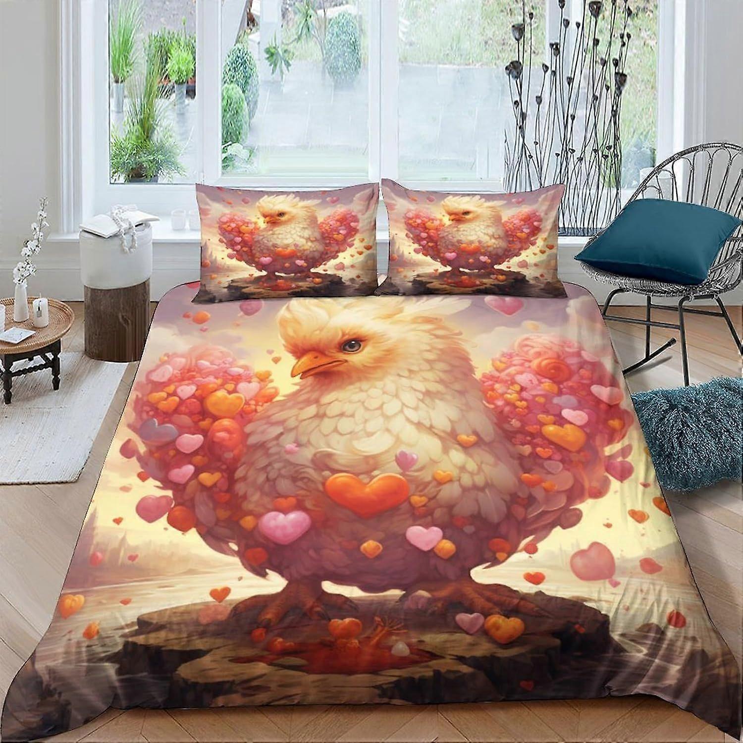 q150 Chicken 3D Printed Comforter Cover Set Wings of Love Duvet Cover Bedding Set for Kids Teens Boys Room Decor Microfiber Quilt Cover 3 Pcs with Pil