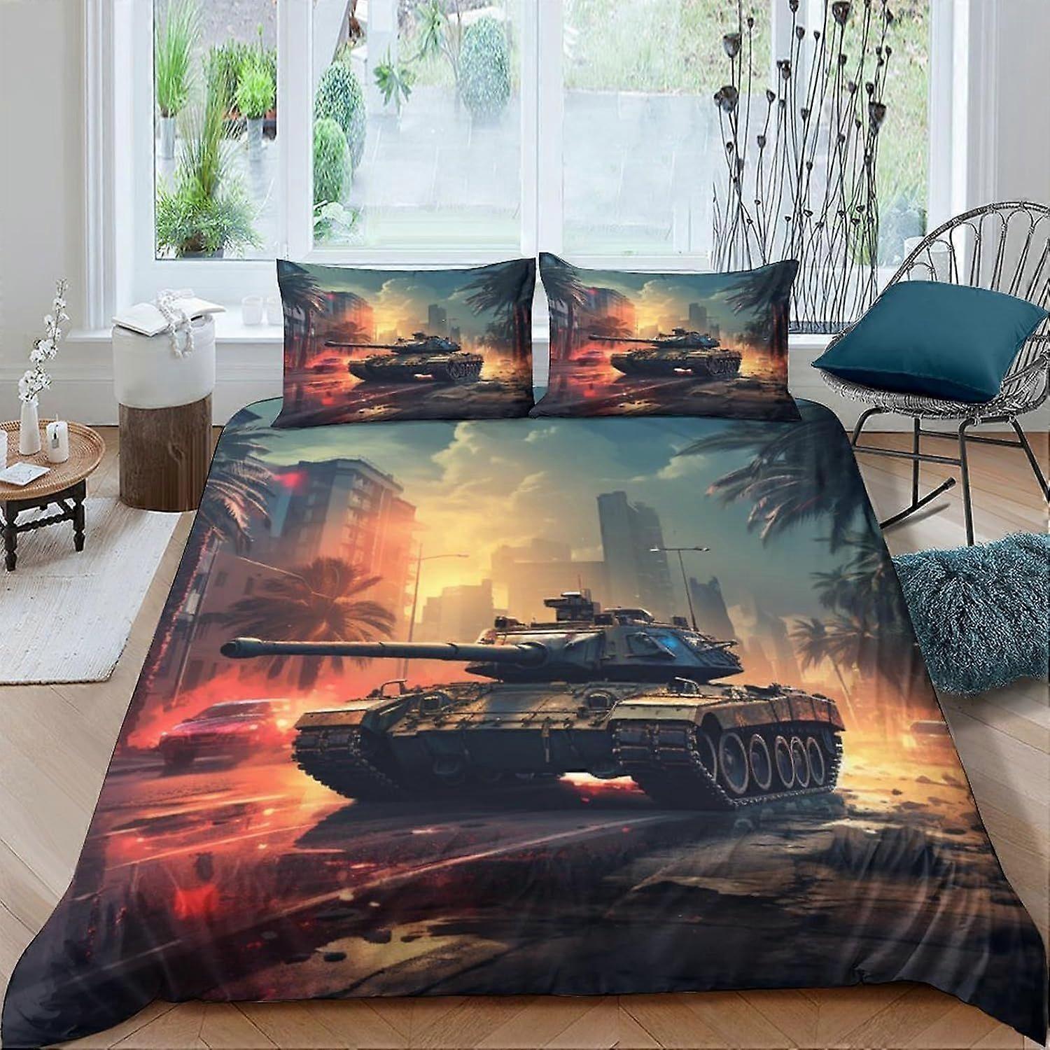q158 Tank Duvet Cover Set - Soft Brushed Microfiber 3 Piece Set Bedding Set with Zipper Closure, Bed Quilt Cover with Pillowcases Double o158