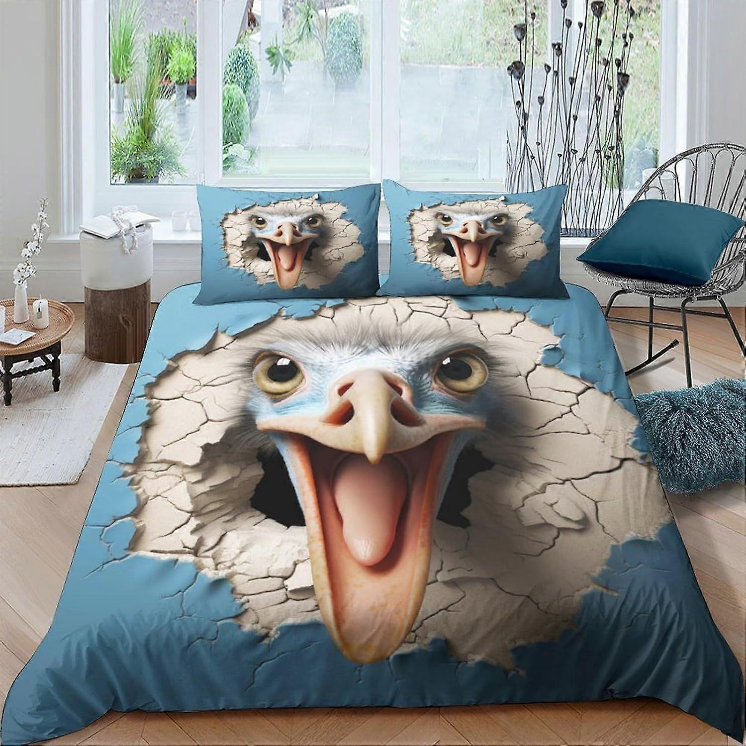 q213 Ostriches 3D Printed Duvet Cover Microfibre Soft Shattered Walls Quilt Covers Bedding Sets with Pillowcase Easy Care Comforter Cover Hidden Zippe