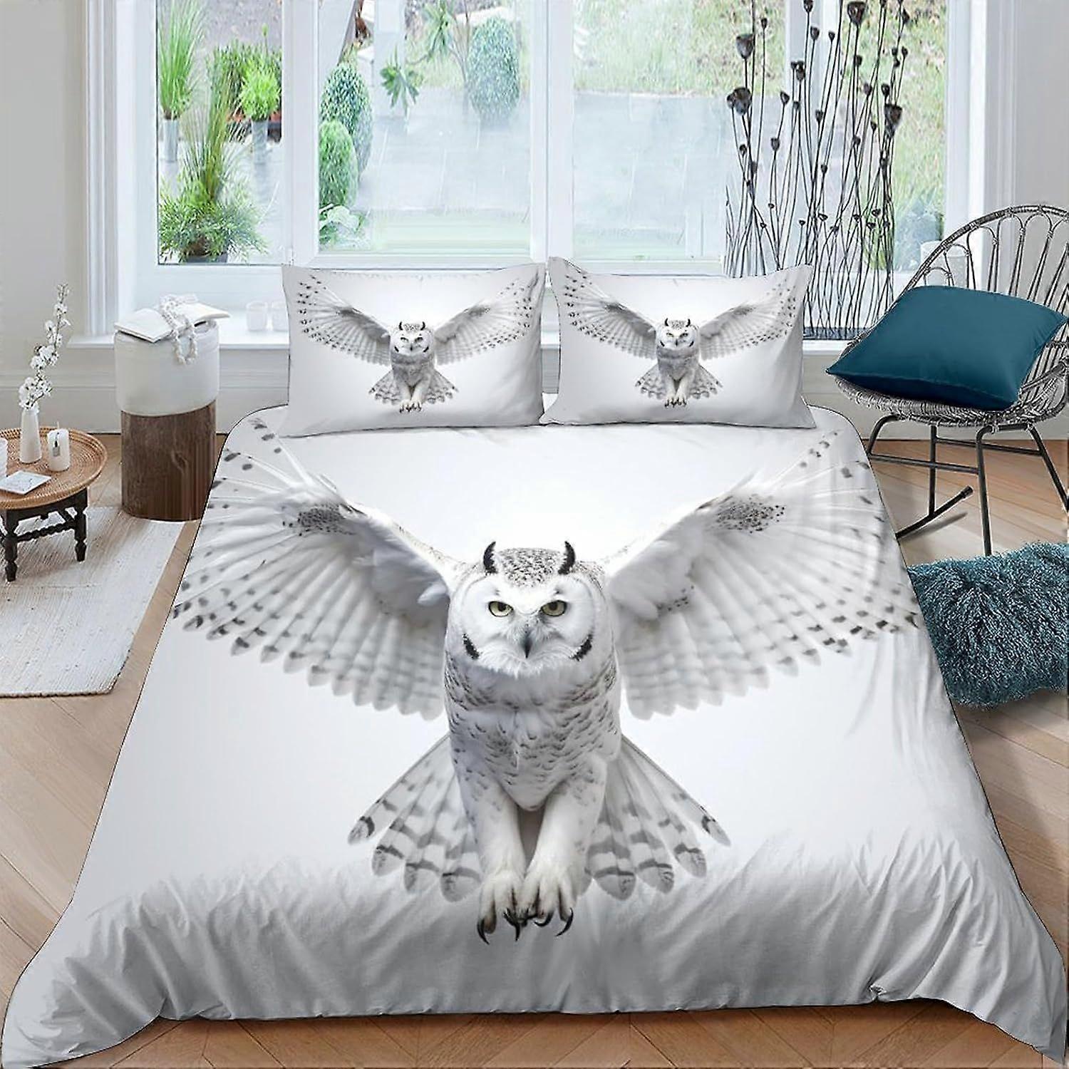 q224 White Owl Duvet Cover 3 PCS Hotel Quality Quilt Cover Bedding Set Bed Covers with Pillowcases with Zipper Closure Ultra Soft Hypoallergenic Micro