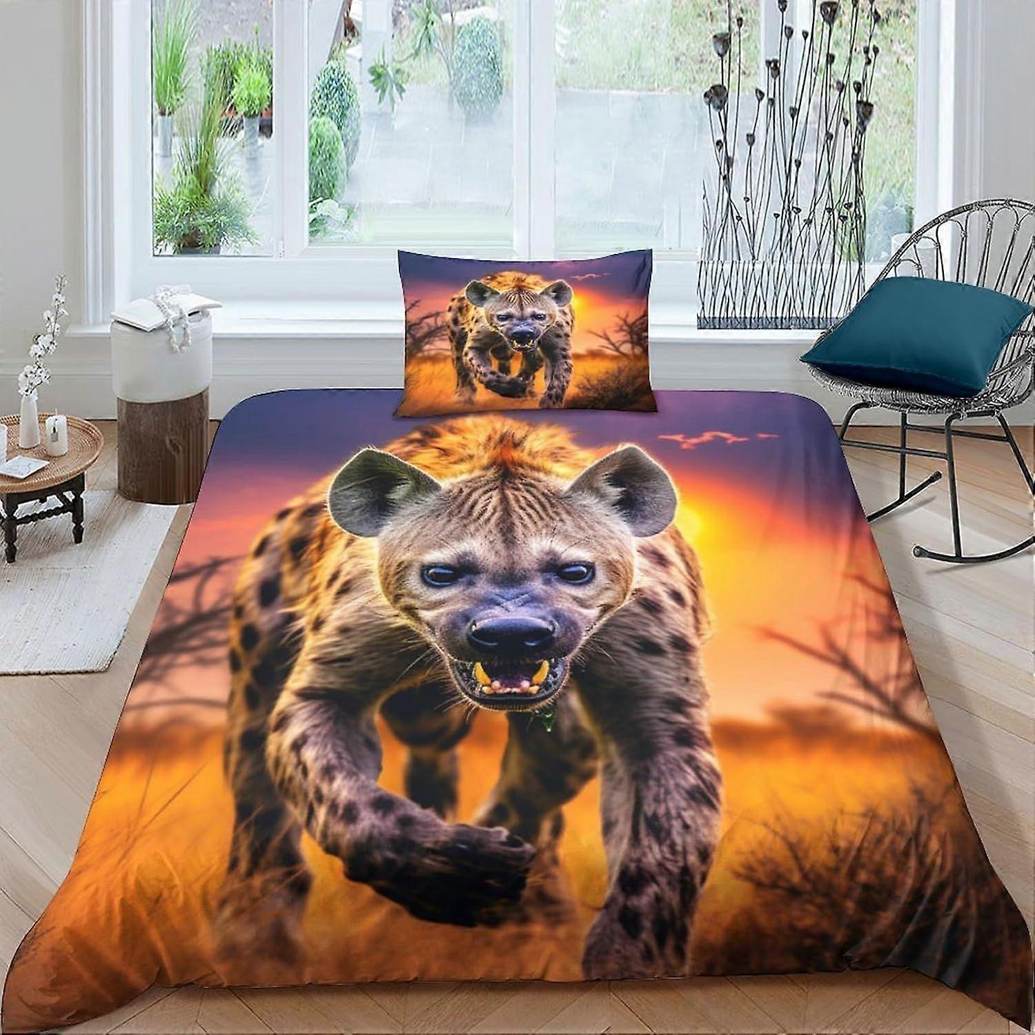 q399 Hyena 3Pcs Bedding Set Printed Quilt Cover,3D Duvet Cover for Boys Adult, Microfibre, with Pillowcases Easy Care Microfiber Comforter Cover Hidde