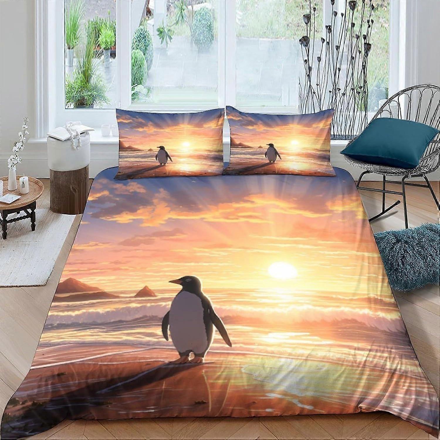 q417 Penguin Duvet Cover Sets 3 PCS Hotel Quality Quilt Cover Bedding Sets Bed Covers with Pillowcases with Zipper Closure Ultra Soft Hypoallergenic M