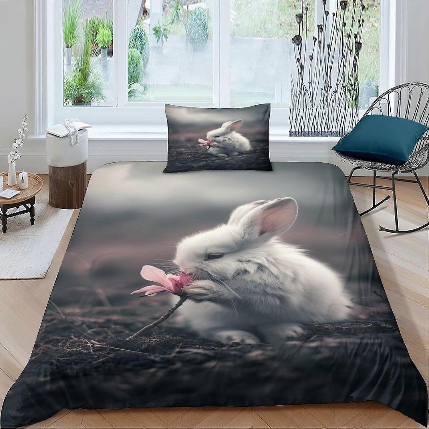 q656 Rabbit Duvet Cover 3 PCS Hotel Quality Quilt Cover Bedding Bed Covers with Pillowcases with Zipper Closure Ultra Soft Anti Allergic Microfiber Si