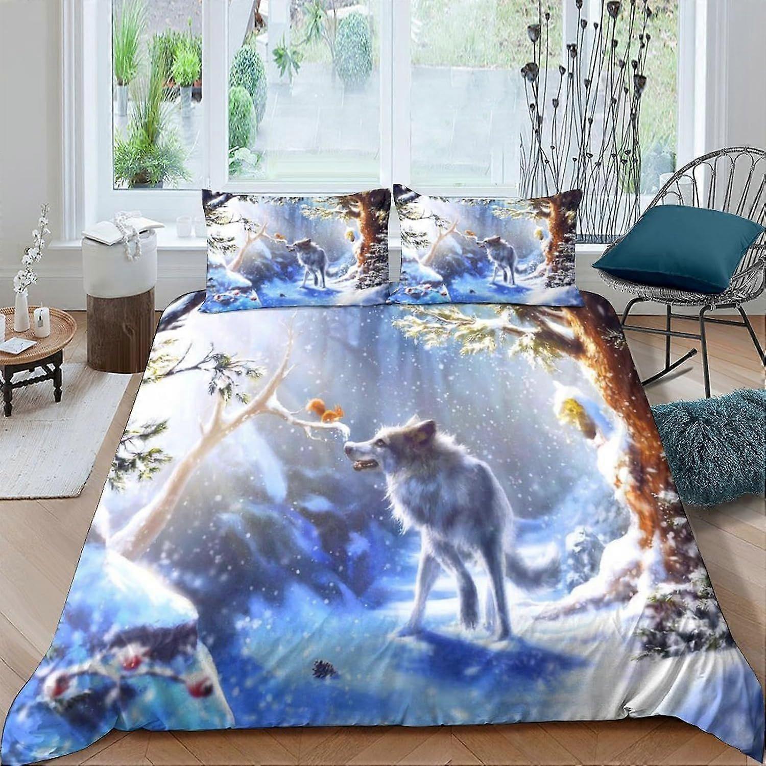 q83 Wolf in The Snow Duvet Cover Set 3 PCS Hotel Quality Quilt Cover Bed Sets Bed Covers with Pillowcases with Zipper Closure Hypoallergenic Soft Brea