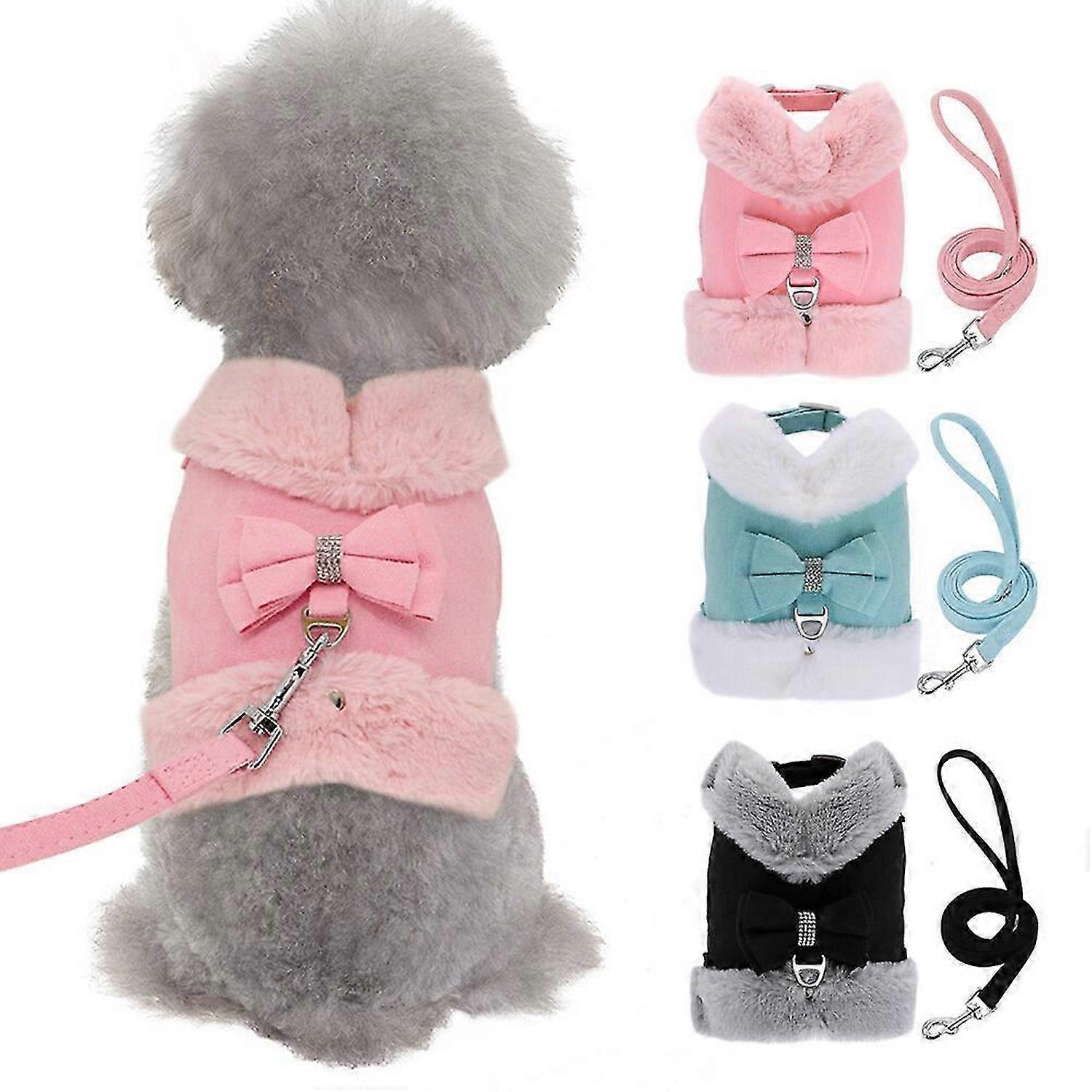 Warm Dog Harness Lead Set Soft Adjustable Fleece Pet Puppy Vest with Fur Collar