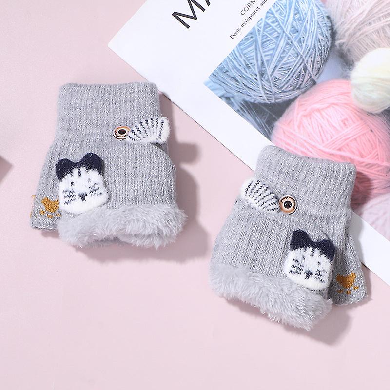 Warm With Velvet Thickened Cold Protection Christmas Cartoon Children's Half Finger Flip Reindeer Gloves